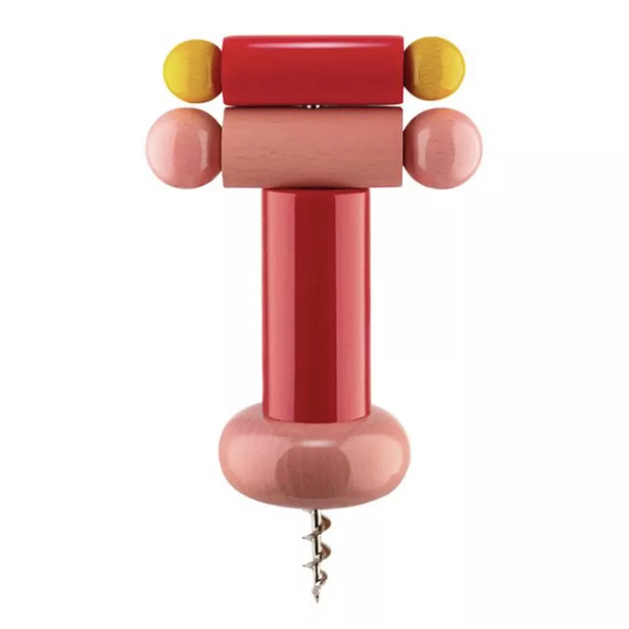 De Sotsass kurkentrekker, ontworpen door Ettore Sotsass, van Alessi heeft een diameter van 6 centimeter en een hoogte van 18 centimeter. Het handvat is gemaakt van FSC-gecertificeerd beukenhout en beschilderd met milieuvriendelijke verf. De kurkentrekker is verkrijgbaar in verschillende kleuren.