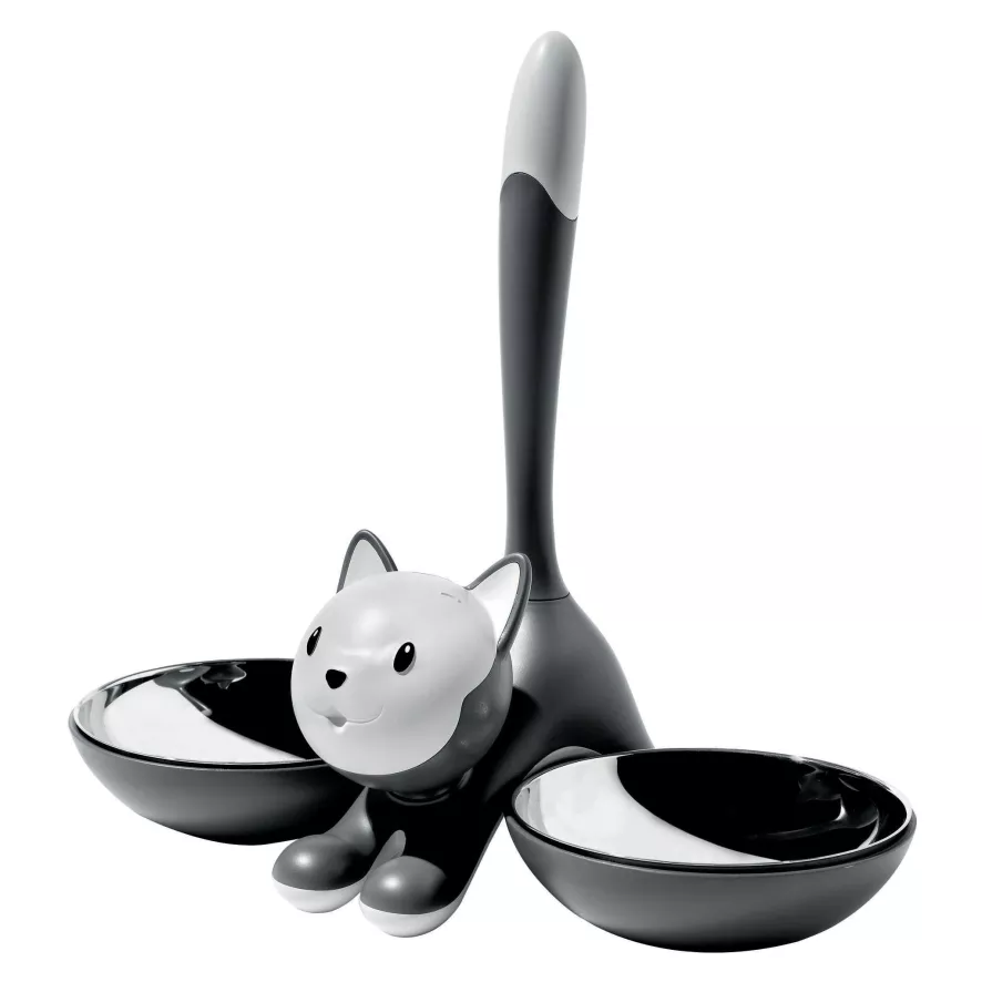 De Tigrito katten voerbak van Alessi, ontworpen door Miriam Mirri, is 16 centimeter breed, 28 centimeter hoog en 32 centimeter lang. De voerbak heeft een inhoud van 55 centiliter. Alles behalve de voerbakjes is gemaakt van thermoplastisch hars. De uitneembare bakjes zijn gemaakt van roestvrijstaal. De Tigrito is verkrijgbaar in verschillende kleuren.