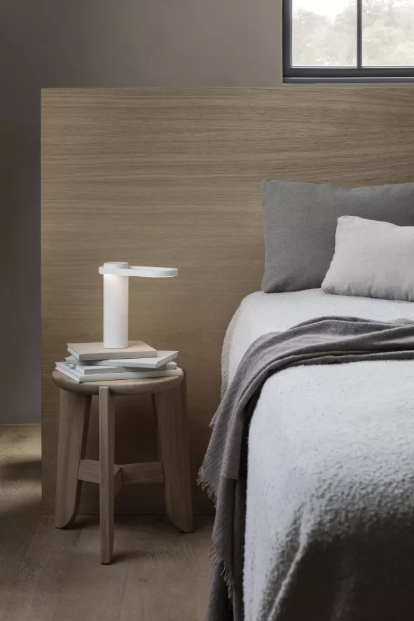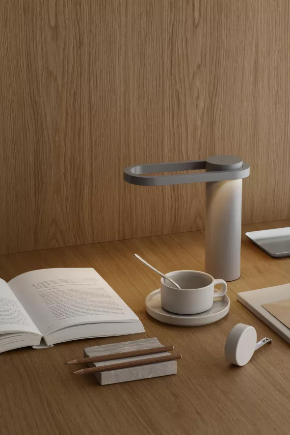 De Hoop tafellamp van Blomus is ontworpen door Antoine Rouzeau. De tafellamp is 23 centimeter lang, 9 centimeter diep en 22 centimeter hoog. De lamp is draadloos en is gemaakt van gepoedercoat aluminium. De tafellamp heeft een brandduur van 8 tot 40 uur. De batterij is op te laden via een magnetische verbinding. De rode of groene lichtkleur geeft het laadproces aan. De lichtopbrengst is 87 lumen en de lamp heeft een waterdichtheid van IP54. De lichtintensiteit is gemakkelijk te veranderen met het aanraakgevoelige knopje bovenop de lamp. De tafellamp is verkrijgbaar in verschillende kleuren en is geschikt voor binnen -en buitengebruik.