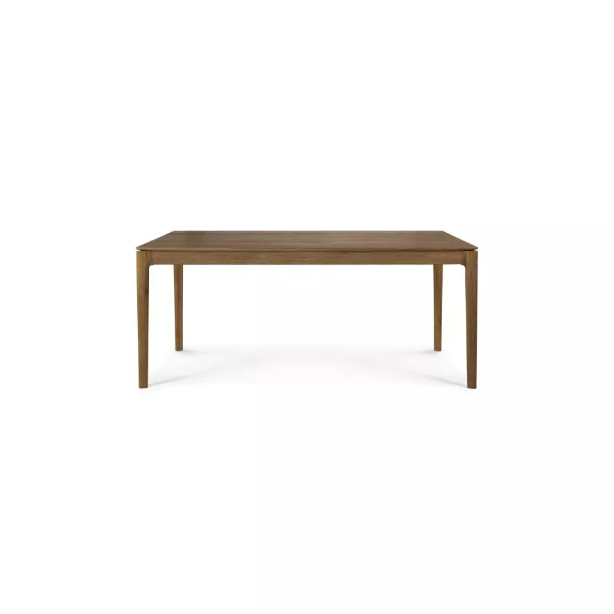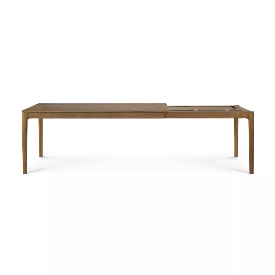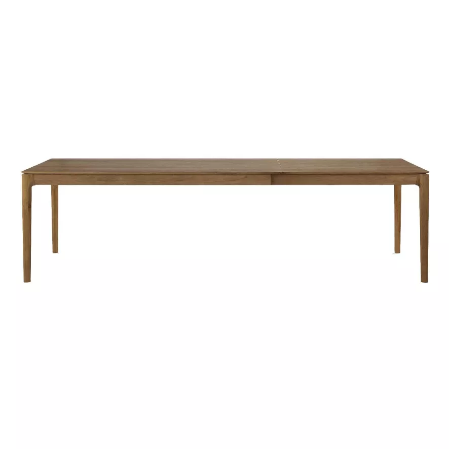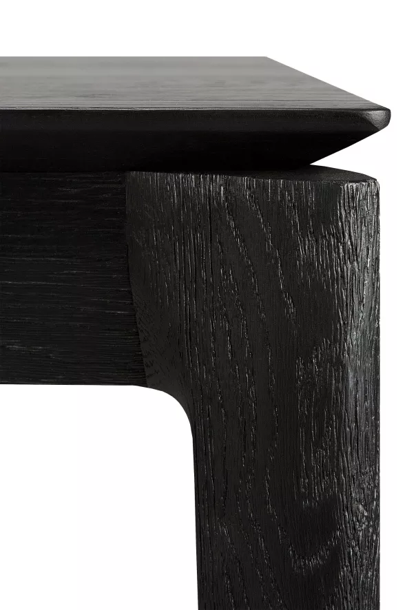 De Bok eettafel uitschuifbaar 180/280×100 van Ethnicraft heeft een lengte van 180 centimeter, een breedte van 100 centimeter en een hoogte van 76 centimeter. Deze eettafel is uitschuifbaar tot een lengte van 280 centimeter. De tafel is gemaakt van massief zwart gebeitst eikenhout of geolied teakhout. De bok eettafel uitschuifbaar 180/280×100 van Ethnicraft is geschikt voor zes tot acht personen en is in verschillende varianten en formaten verkrijgbaar.