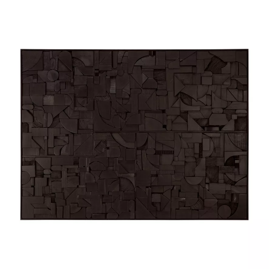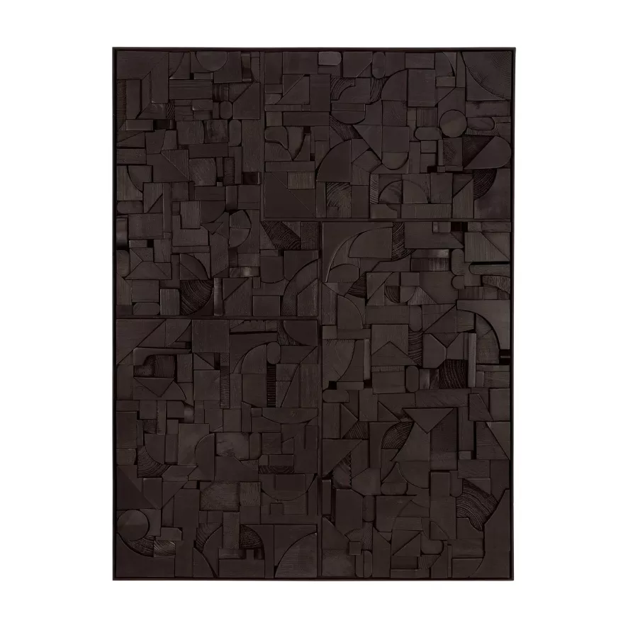 De Bricks wanddecoratie 120×90 van Ethnicraft heeft een breedte van 120 centimeter, een hoogte van 90 centimeter en een diepte van 4 centimeter. De wanddecoratie heeft een lijst van massief walnoothout. Het kunstwerk is gemaakt van gerecycled massief hout en productierestanten.