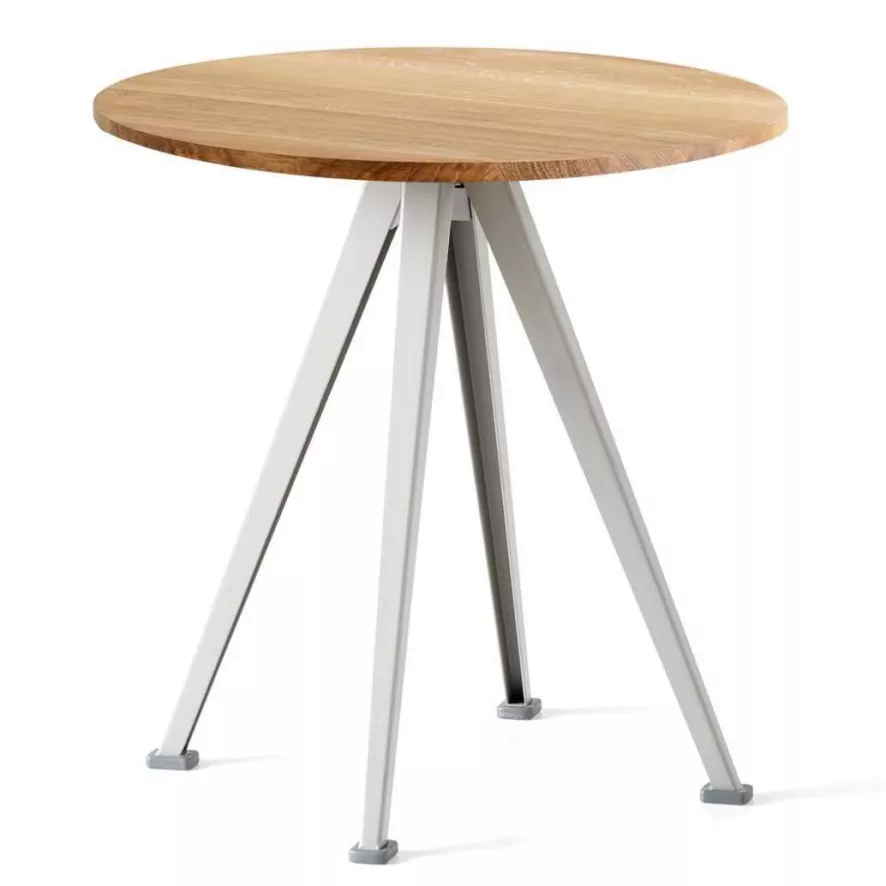 De Pyramid 21 tafel 70 van Hay heeft een diameter van 70 centimeter en een hoogte van 74 centimeter. De Pyramid tafel is gemaakt van gesneden plaatstaal en heeft een tafelblad van eikenhout. Je kunt voor deze tafel kiezen uit verschillende kleuren. De Pyramid tafel is ook verkrijgbaar in andere maten en uitvoeringen.