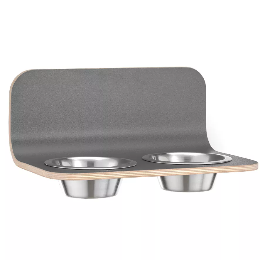 De Acro hondenvoerbak wand small/medium van MiaCara is 35,2 centimeter lang, 21,7 centimeter breed en 15 centimeter hoog. De twee roestvrijstalen kommen hebben elk een inhoud van 0,4 liter en hebben een binnendiameter van 12 centimeter. De Arco hondenvoerbak wand small/medium is gemaakt van gebogen multiplex met een coating van hogedruklaminaat en kan afgenomen worden met een zacht doekje. De wand is verkrijgbaar in twee kleuren. De twee kommen zijn gemaakt van geborsteld roestvrijstaal en zijn geschikt voor de vaatwasser.