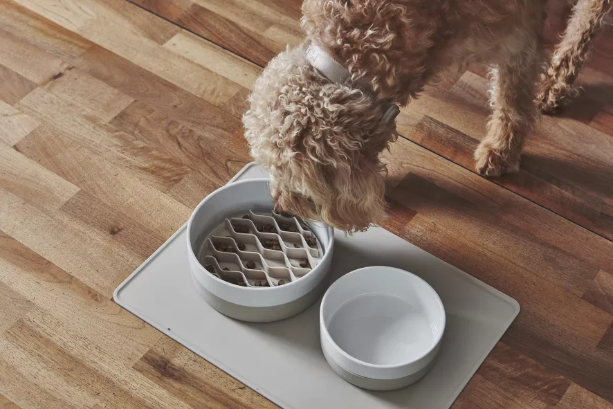 ∙ Het inzetstuk zorgt ervoor dat je hond zijn voer in porties eet en niet kan schrokken.