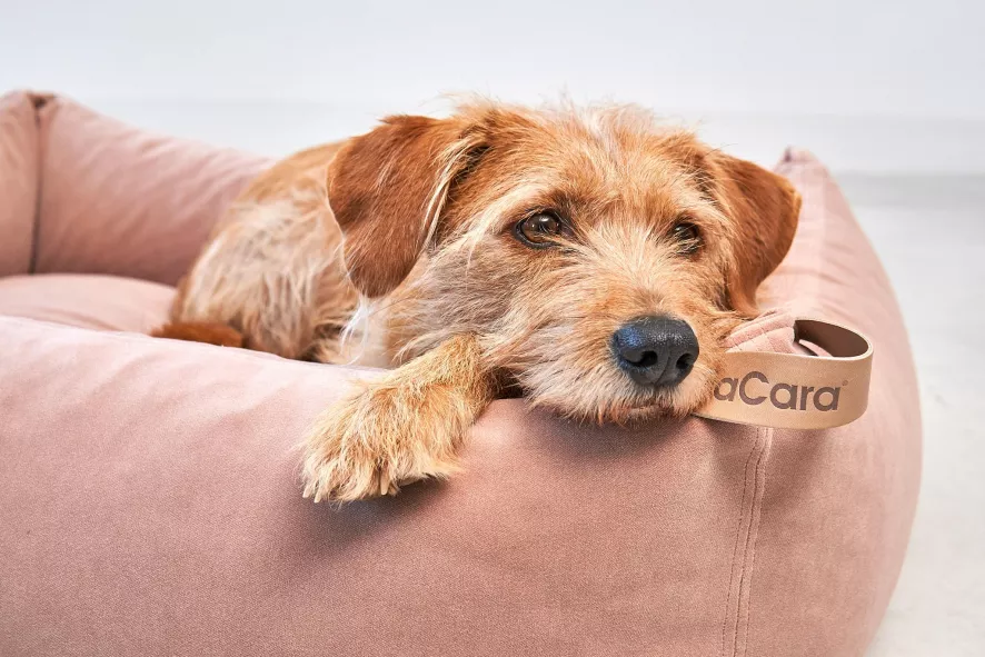 De Velluto hondenmand medium van MiaCara heeft een lengte van 91 centimeter, een breedte van 71 centimeter en een hoogte van 26 centimeter. Deze hondenmand heeft een afneembare en wasbare hoes van polyester die tot een temperatuur van 40 graden Celsius in de wasmachine gewassen mag worden. Gebruik hiervoor bij voorkeur een mild wasmiddel. De hoes dient na het wassen aan de lucht gedroogd te worden. Het binnen kussen heeft een hoes die voor 60% uit katoen en voor 40% uit polyester bestaat. Deze hoes mag in de wasmachine tot een temperatuur van maximaal 60 graden Celsius, met de fijne was, gewassen worden. Ook hier dien je een mild wasmiddel te gebruiken. Centrifugeer de hoes goed en laat deze aan de lucht drogen. De vulling van de hondenmand is gemaakt van stabiel, duurzaam, hypoallergeen en elastisch polyurethaanschuim dat op een temperatuur van 30 graden Celsius, met de fijne was, in de wasmachine gewassen mag worden. Centrifugeer het goed en laat deze aan de lucht drogen. Het is mogelijk om de binnen hoes en het matras in de droogtrommel te laten drogen maar let hierbij op dat de temperatuur niet boven de 60 graden Celsius uitkomt. Dit hondenkussen is geschikt voor Beagles, Collies, Cocker Spaniels, Ierse Setters, Schnauzers, en andere middelgrote hondenrassen. De Velluto hondenmand medium van MiaCara is in verschillende kleuren en formaten verkrijgbaar.