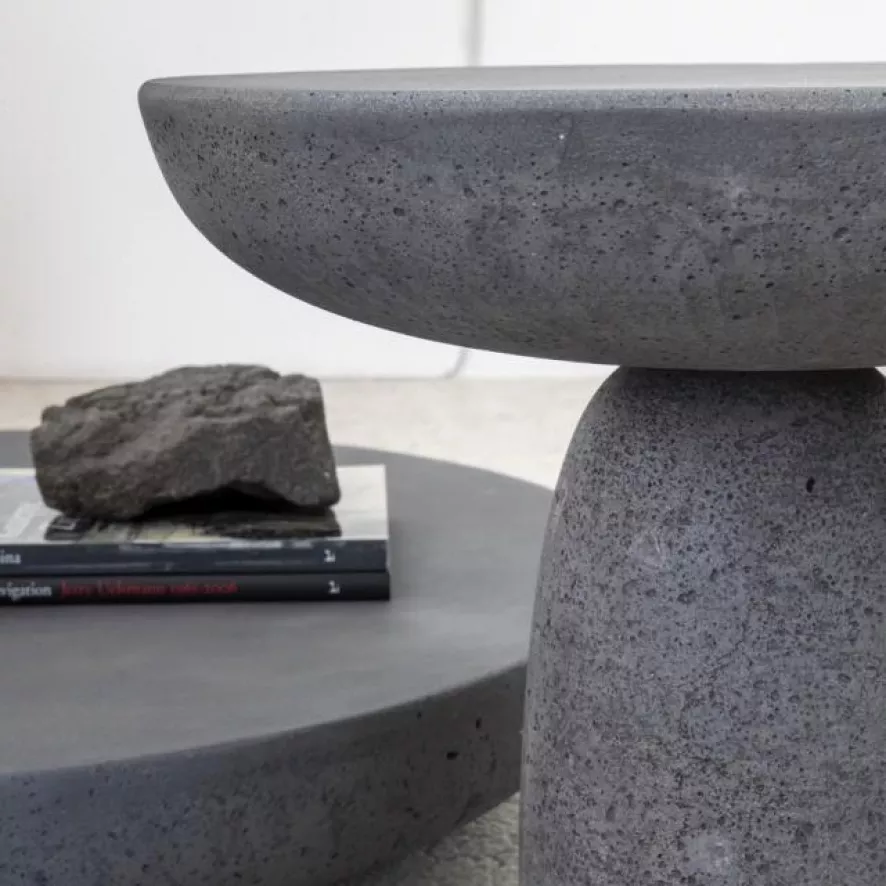 De Olo salontafel heeft een diameter van 50 centimeter en een hoogte van 47 centimeter. De tafel is gemaakt van beton en weegt 54 kilo. De tafel is in verschillende kleurvariaties en maten verkrijgbaar.