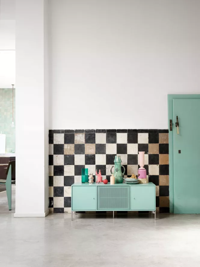 De Octave I TV-kast van Montana is gemaakt van MDF en staal. Deze TV-kast is 116,4 centimeter lang, 48 centimeter hoog en 38 centimeter diep. In het midden van deze TV-kast bevindt zich een inschuifbare deur. De ruimte achter deze deur wordt in tweeën gedeeld door een plankje. De achterwand is voorzien van een kabelgat. De middensectie van deze TV-kast wordt aan beide zijden vergezeld door een kastje met een houten klapdeur. Je kunt ervoor kiezen om deze kast middels een rails te bevestigen aan de muur, maar hij kan natuurlijk ook prima op de grond staan. De TV-kast wordt geleverd met metalen pootjes. Op aanvraag zijn wieltjes of houten plinten beschikbaar. Deze kast is verkrijgbaar in verschillende kleuren.