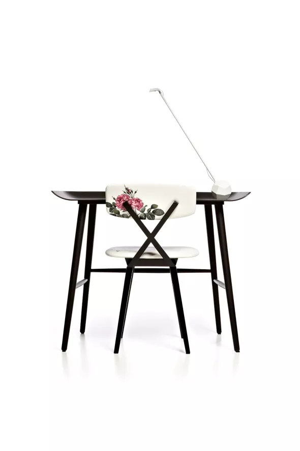 Het Moooi Woood bureau is 100 centimeter lang, 55,5 centimeter diep en 78 centimeter hoog. Tussen de poten is een ruimte van 64 centimeter, de werkhoogte van het tafelblad is 71 centimeter. De poten van de tafel zijn gemaakt van beukenhout, het dunne tafelblad van eikenfineer. De kleur van deze tafel is zwart (gebeitst). Achterin het tafelblad zit een uitsparing met een diameter van 5 centimeter, om kabels en snoeren door te laten.