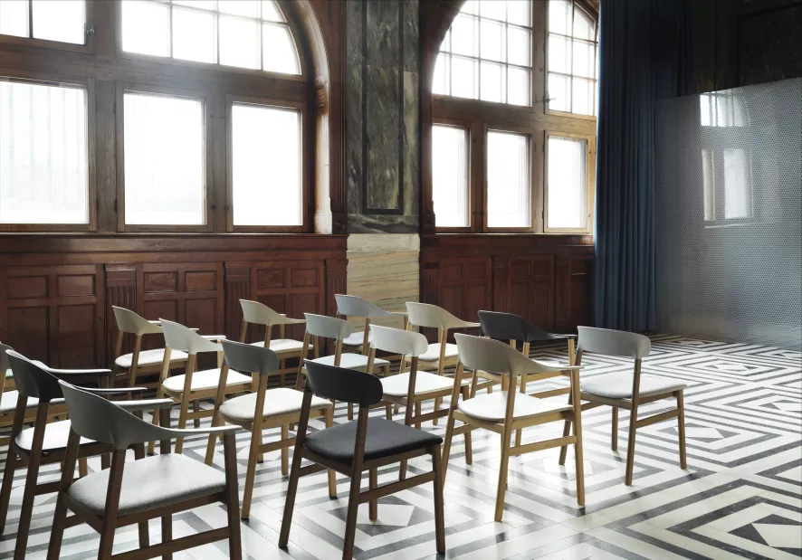 De Normann Copenhagen Herit Smoked Oak stoel gestoffeerd is ontworpen door Simon Legald.