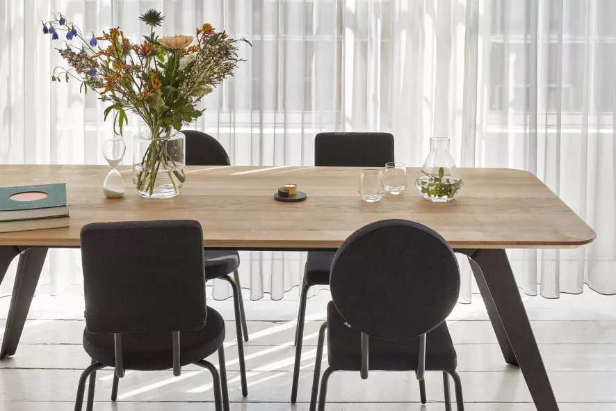 De Option Round stoel van Puik is 48 centimeter breed, 51 centimeter diep en 85 centimeter hoog. De stoel heeft een vilten bekleding en een stalen frame. De stoelen zijn verkrijgbaar in vier verschillende uitvoeringen waarbij het zitvlak en de rugleuning rond of vierkant zijn. De Option Round stoel is stapelbaar.