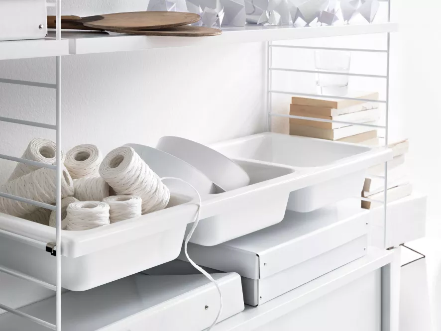 De String Hoge kast 5 medium, grijs is ontworpen door Nils Strinning.