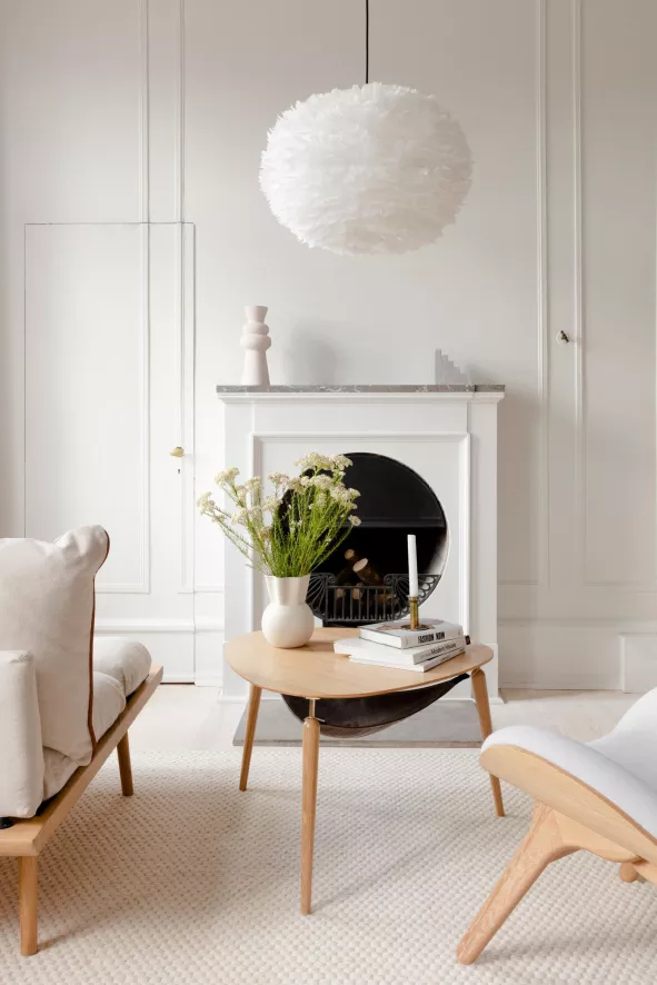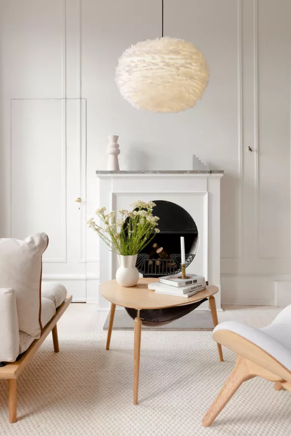 De Eos Large hanglamp van Umage heeft een diameter van 65 centimeter en een hoogte van 40 centimeter. Deze variant wordt geleverd met een zwart snoer van 210 centimeter lang. In de lamp zit een E27 fitting, geschikt voor een lichtbron van maximaal 15W. De lichtbron wordt niet meegeleverd. Eos Large is gemaakt van ganzenveren en papier en is Responsible Down Standard (RDS) gecertificeerd. Dit betekent dat de veren via een humane behandeling van de ganzen zijn verkregen. Eos is in verschillende kleuren beschikbaar, met wit of zwart snoer. Daarnaast vind je in de Eos serie van Umage diverse formaten en vormen van deze lamp. Umage verpakt de verlichting in herbruikbare giftboxes.