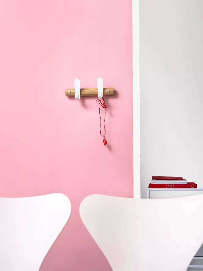 De Sticks HJH 30 kapstok van Van Esch heeft een breedte van 30 centimeter, een hoogte van 12,5 centimeter en een diepte van 7,5 centimeter. Het profiel van de kapstok is gemaakt van naturel gelakt essenhout. Op het profiel zijn drie witte kunststof haken bevestigd. Je kunt ook kiezen voor een andere maat Stick kapstok, bijvoorbeeld de Sticks HJH 60 of 90.