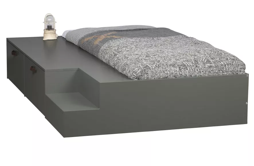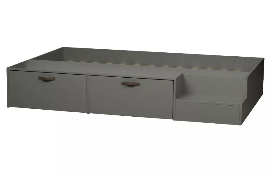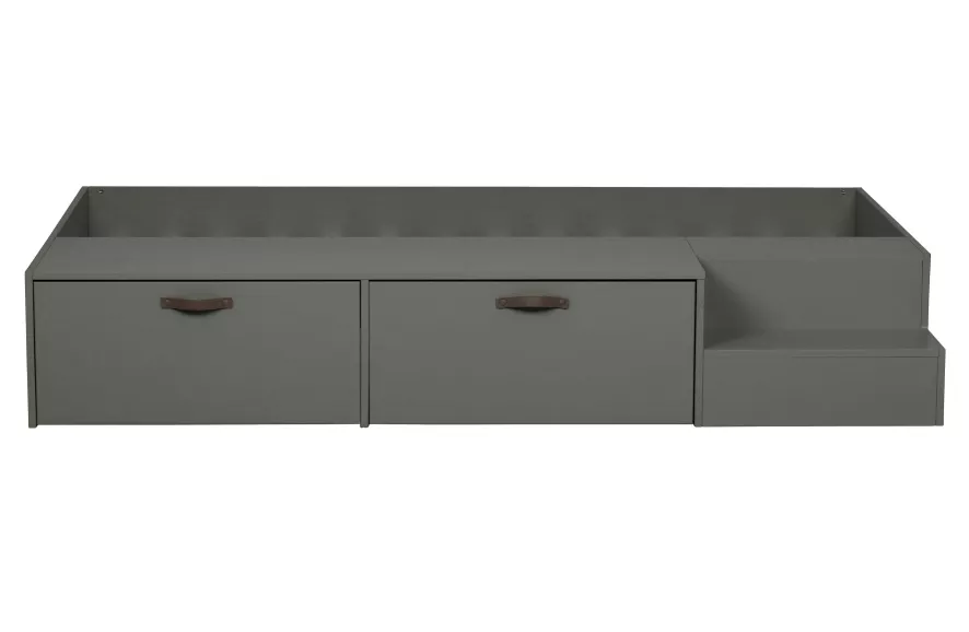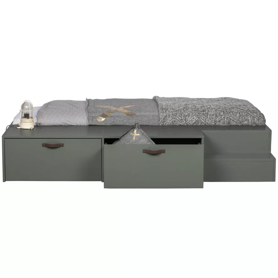Het Stage kinderbed 80×200 excl lattenbodem van vtwonen is 204 centimeter breed, 131 centimeter diep en 35 centimeter hoog. Het kinderbed is volledig gemaakt van FSC gecertificeerd grenenhout gelakt in een groene soap tint en heeft leren handvatten. Het bed heeft twee lades en twee tredes met een hoogte van 18 centimeter. Het matras en een lattenbodem worden niet meegeleverd.