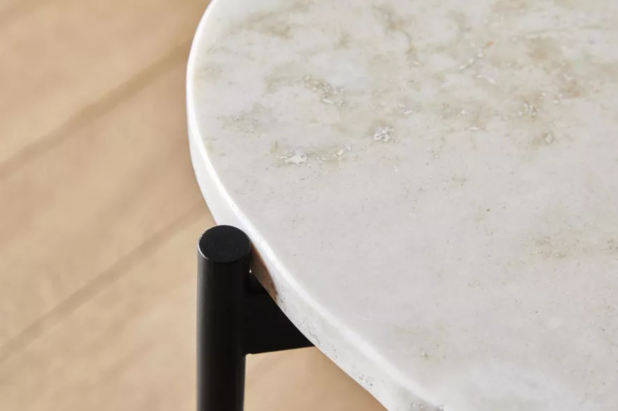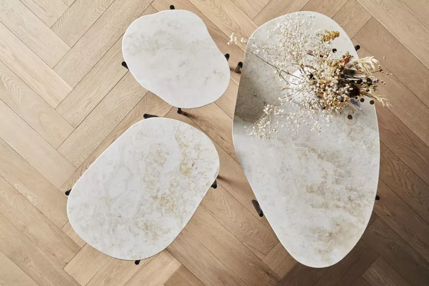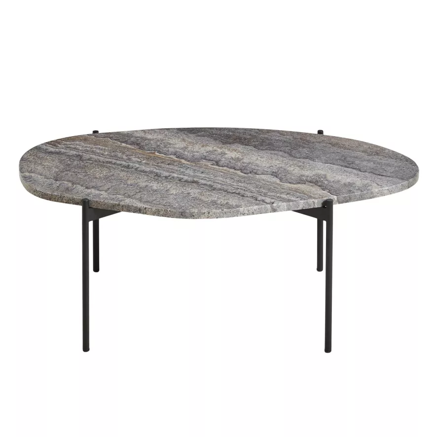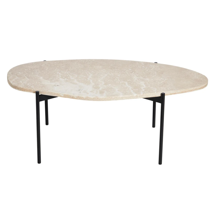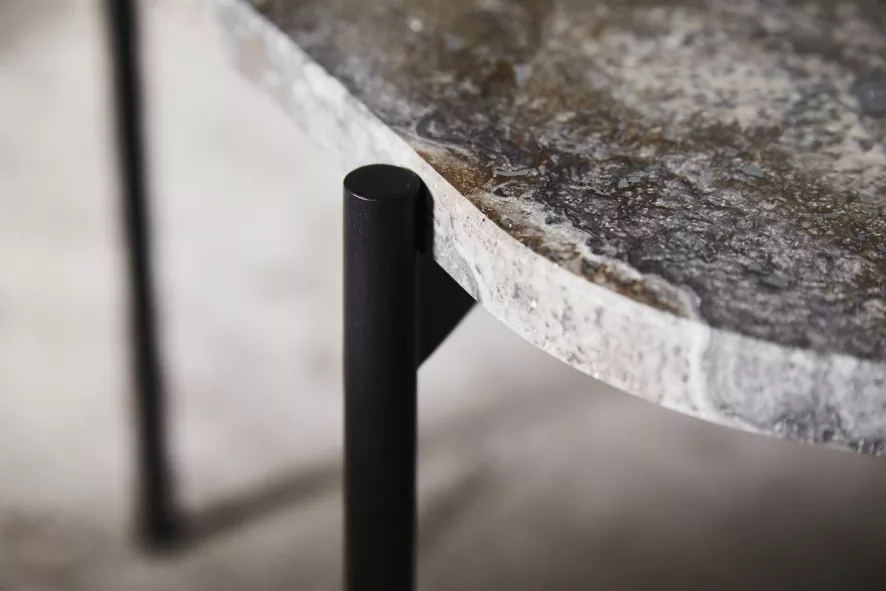 De La Terra salontafel van Woud heeft een lengte van 95 centimeter, een breedte van 54 centimeter en een hoogte van 36 centimeter. Deze bijzettafel heeft een onderstel van zwartgeverfd metaal en een tafelblad van Travertijnsteen. De La Terra salontafel van Woud is in verschillende uitvoeringen en formaten verkrijgbaar.